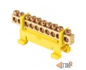 EKF sn0-63-10-sy Шина "0" PE (6х9мм) 10 отверстий латунь желтый изолятор тип "Стойка" на DIN-рейку EKF PROxima
